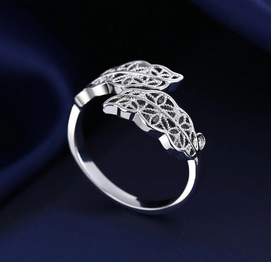 Leaf Design Silver Plated Zircon Ring