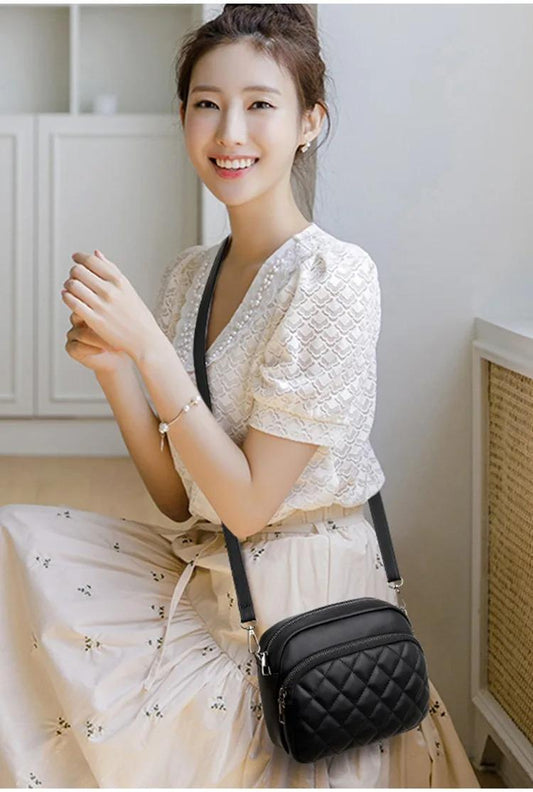 Black Diamond Quilted Camera Bag Crossbody PU Leather