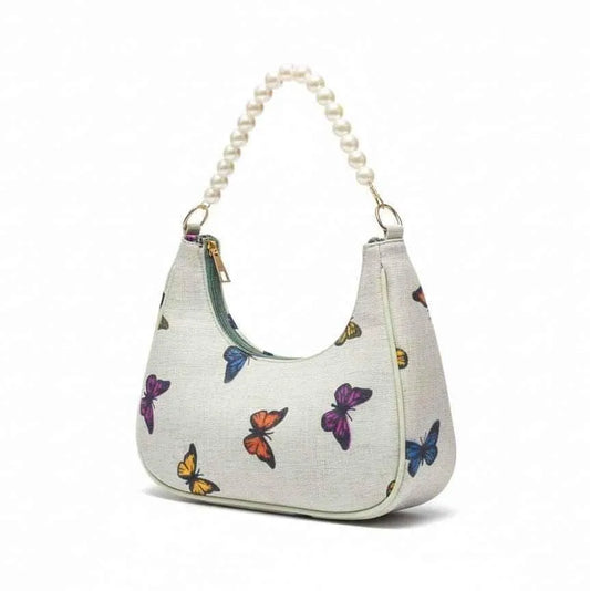Girl's Butterfly Print Hobo Bag Pearl Handle PU Leather