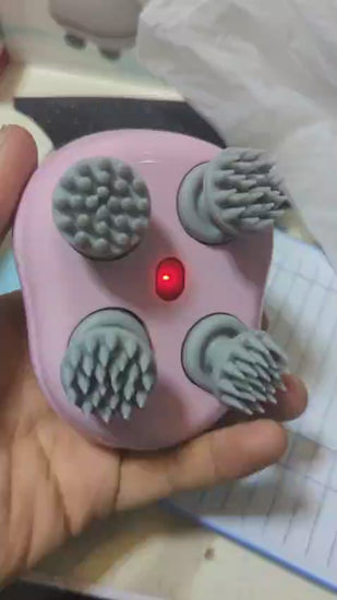 The massager features 4 independent rotating heads, each equipped with 6 soft silicone kneading nodes (24 total). When activated, the heads rotate in synchronized circular motions, creating a 3D massage effect that gently lifts and kneads the scalp. This motion stimulates blood flow to hair follicles, relieves muscle tension, and provides a deeply relaxing sensation similar to professional scalp massage.
