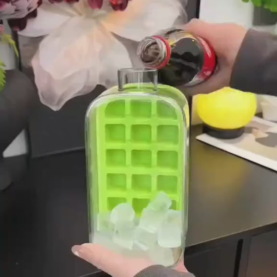 Crafted from premium BPA-free food-grade silicone and durable PET plastic, this ice cube bottle delivers safety, functionality, and style. The flexible silicone ice tray mold creates 18 perfectly sized ice cubes that release with a gentle press, while the transparent PET bottle lets you see your refreshing drink inside. The leakproof screw-top lid with built-in straw hole ensures spill-free portability, and the wide mouth opening makes filling and cleaning effortless. The innovative design keeps ice cubes contained until you're ready to use them – perfect for iced coffee, fruit-infused water, smoothies, cocktails, or any cold beverage. The protective silicone sleeve provides grip and insulation, while the compact design fits standard cup holders. Whether you're working out, commuting, camping, or relaxing at home, this multifunctional bottle makes enjoying perfectly chilled drinks easier than ever! 🌟☀️